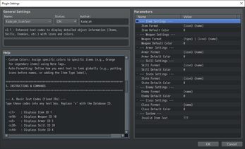 - Universal Database Support: Works for almost every database object type. Display Items <i>, Weapons <w>, Armors <a>, Skills <s>, States <st>, Enemies <e>, and Classes <c> effortlessly.
